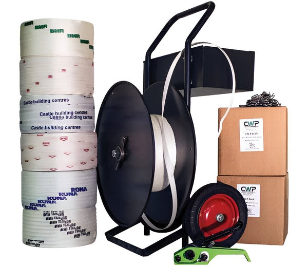 The CWP Strapping Kit offers a portable and convenient solution for securing loads, making it a perfect choice for truck drivers, contractors, and warehouse operations. Designed for ease of use, this kit utilizes durable polypropylene strapping to secure skids, boxes, and tubing effortlessly, whether on the road or in a warehouse setting.Its lightweight design ensures mobility, allowing users to carry it wherever needed. Whether you're managing logistics on the move or organizing inventory in the warehouse, this kit delivers a practical, reliable, and efficient way to secure your load.